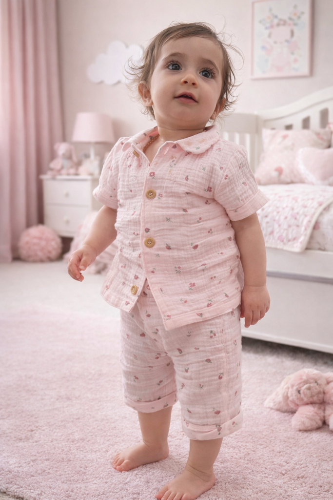 Juniors girl short sleeve summer pj pink flowers