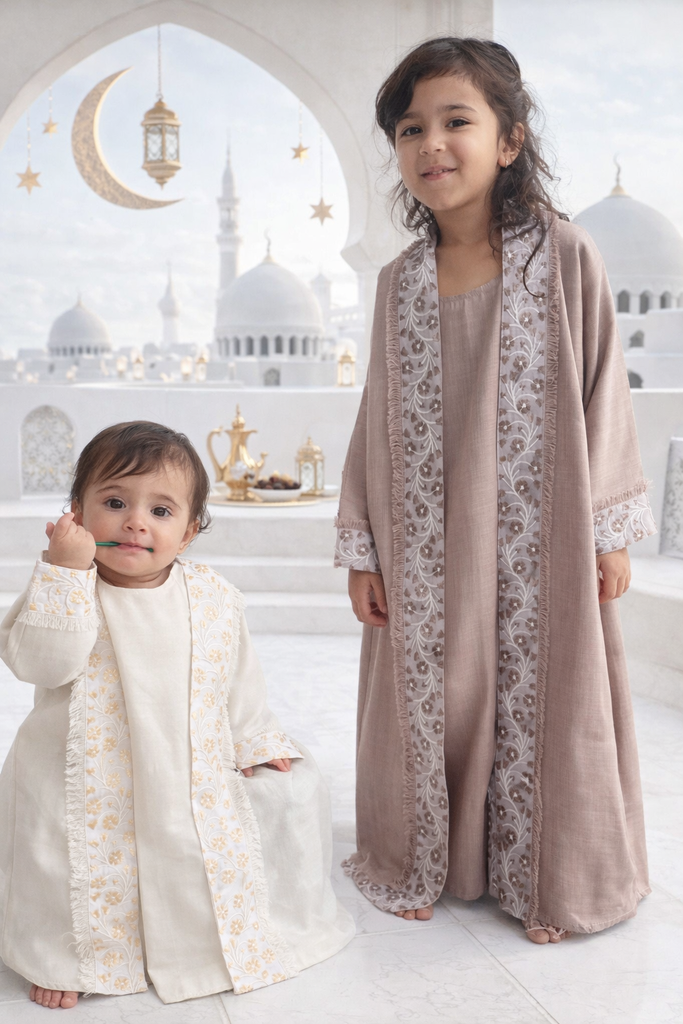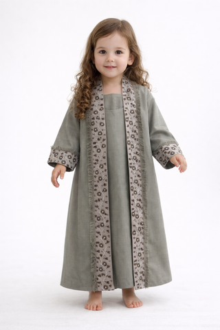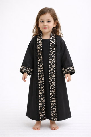 A luxurious embroidered girls abaya from 0 months - 6 years all the way from Bahrain