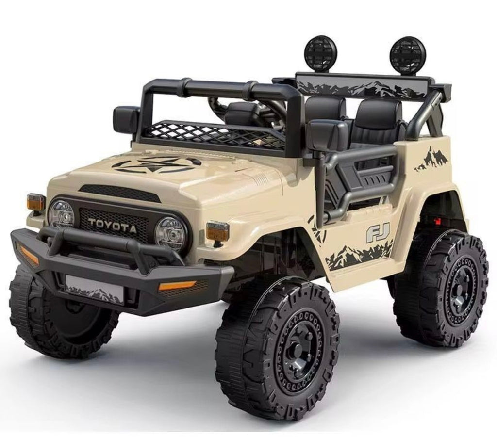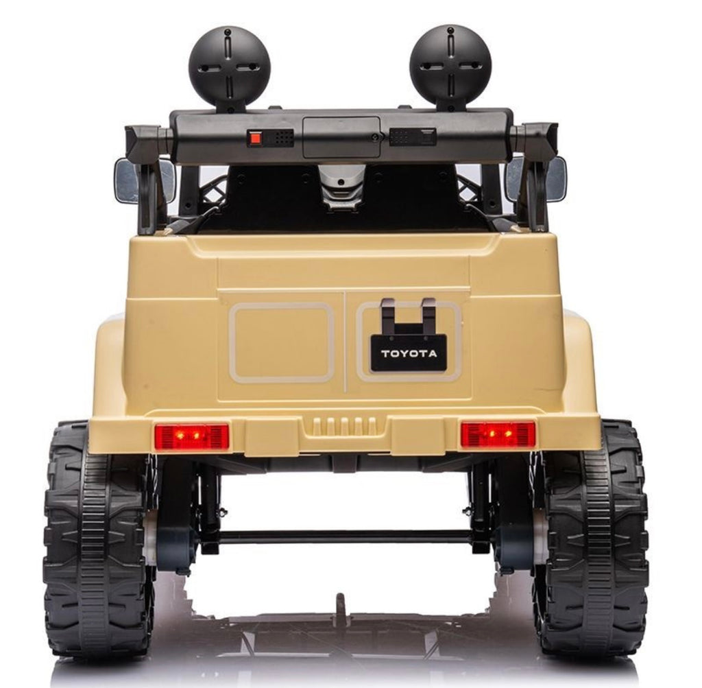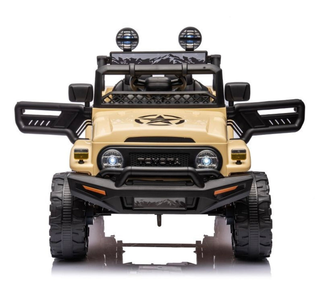- Authentic Design: Modeled after the classic Toyota FJ Cruiser, with detailed styling, bold bumpers, roll bars, mountain decals, and working LED lights.